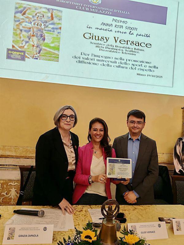 IN SICILIA - A Milazzo, Giusy Versace ha invece ricevuto il premio 'Anna Rita Sidoti, in marcia verso la parità', organizzato da Soroptimist International Club Milazzo e dalla sua presidentessa Grazia Di Paola, nelle splendide sale di Palazzo D'Amico.